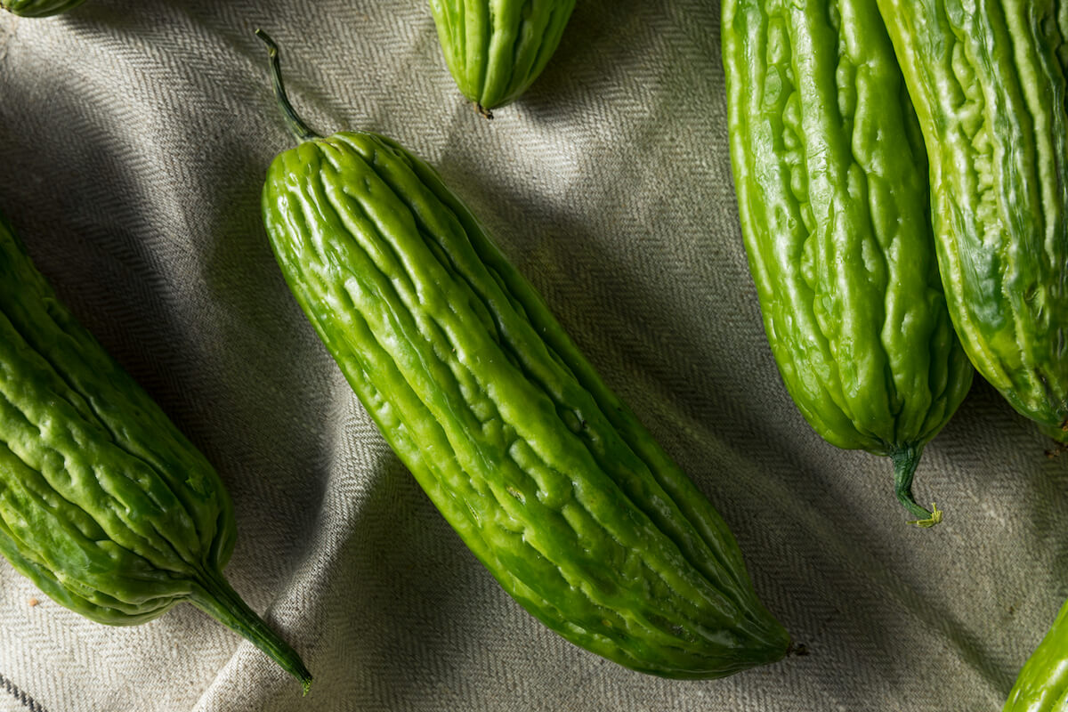 여주는 아마도 이름부터 생소하신 분들이 많으실 텐데요. 여주는 박과에 속하는 한해살이 풀로 그 과실을 고과라고도 불리며, 생김새는 오이와 비슷하며 우둘투둘한 도깨비방망이 모양의 과피가 특징입니다. 맛은 쓴 맛이 매우 강한 편으로 비터멜론이라고 불린다고 해요.